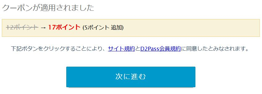 クーポンを入力して適用すると、以下のように表示されます。
