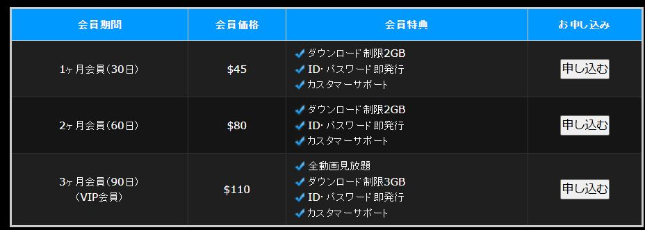 女体のしんぴには1か月会員、2か月会員、3か月会員があります。入会するプランの「申し込む」をクリックします。