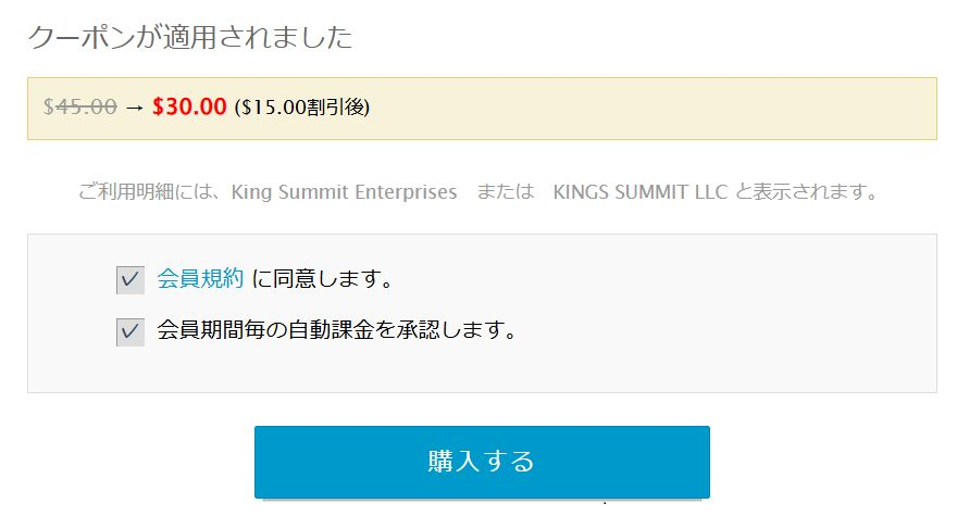 以下のクーポンコードを入力後、「適用」をクリックすると割引きされます。